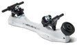 The Avenger Magnesium plate is a 45 degree double action plate with adjustable pivots. Originally designed for short track speed skating but re-imagined for Roller Derby in the early 2000's. Lightweight Magnesium plates, white powder coated, DA45 black aluminum trucks with steel hardened 8mm axles, hollowpoint kingpins, Sure Grip Purple 85a Super Cushions (4 barrel & 4 conical), and a rubber Carrera toe stop. Includes axles nuts and mounting hardware.